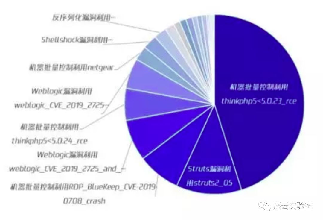 新冠疫情之下“停课不停学”的号召,为在线教育行业注入催化剂。相对于传统的医疗行业,在线教育行业由于激增的线上教学需求,在业务研发上更加“激进”,这也带来了第三方组件滥用的风险,高危漏洞频出的ThinkPHP、Struts2、RDP成为黑客近期攻击教育行业的“突破口”。针对教育行业的Nday漏洞攻击源绝大部分来自境内。由于此类手法“动静”较小,加上国内拨号IP资源集中的现状,动态秒拨IP技术是攻击惯用手段。