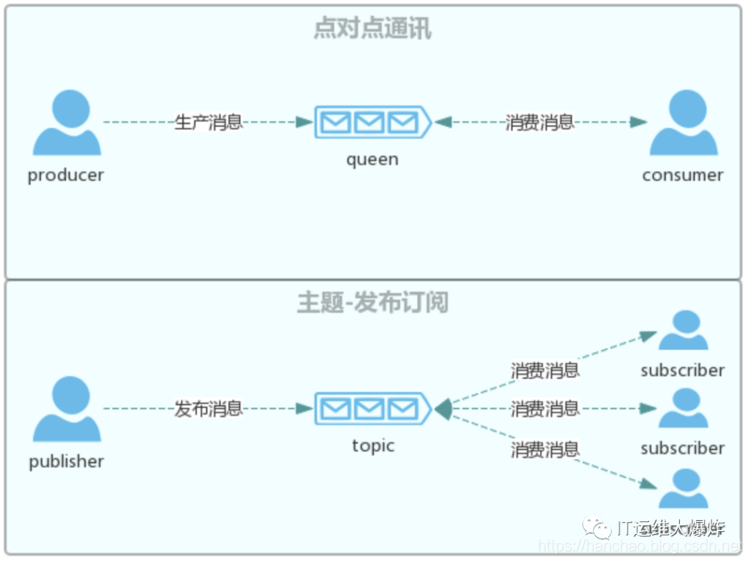 消息队列主要有两种模式:点对点(Point to Point)模式和发布-订阅(Publisher-Subscriber)模式。