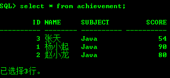 例如,使用如下语句向表ACHIEVEMENT中添加3条记录: