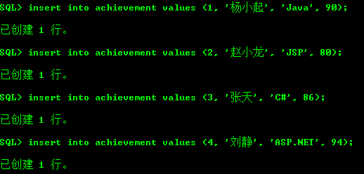 使用如下语句向表ACHIEVEMENT中添加4条记录: