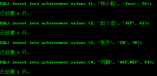 例如,使用如下语句向表ACHIEVEMENT中添加4条记录: