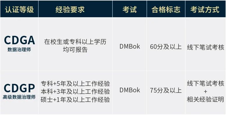 数据治理工程师CDGA:在校大学生,或专科及以上学历获得者;