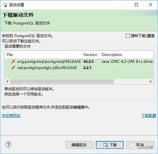 点击最下面的“测试链接(T)”可以测试连接配置的正确性。初次创建某种数据库的连接时,会提示下载相应的 JDBC 驱动。