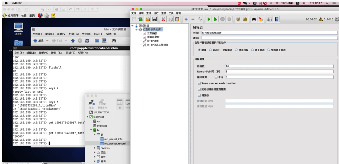 最近比较忙,没时间完善微信抢红包秒杀的原子性。下面那个完整案例抢库存的,亲自使用 Jmeter 压测几次,是原子性的,可以拿来借鉴,感兴趣的同学,可以借鉴下面抢库存的代码,把微信抢红包的功能在完善下,我就不修改啦。