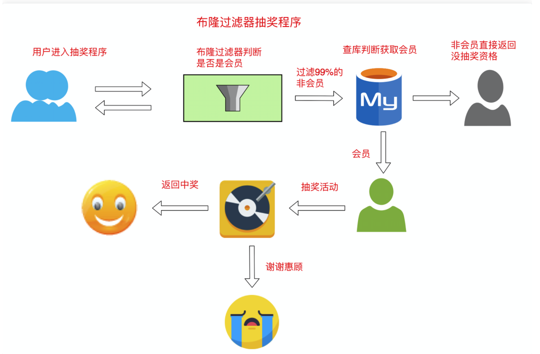 程序启动时将数据放入内存中 google自动创建布隆过滤器 用户ID进来之后判断是否是会员
