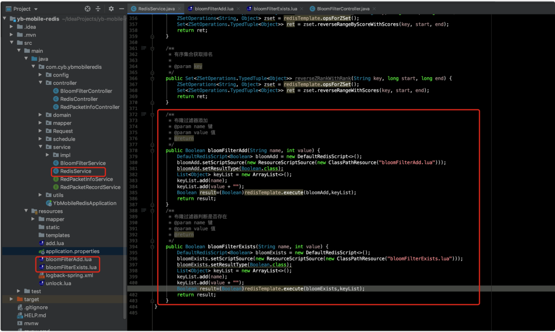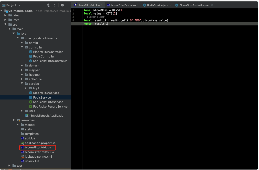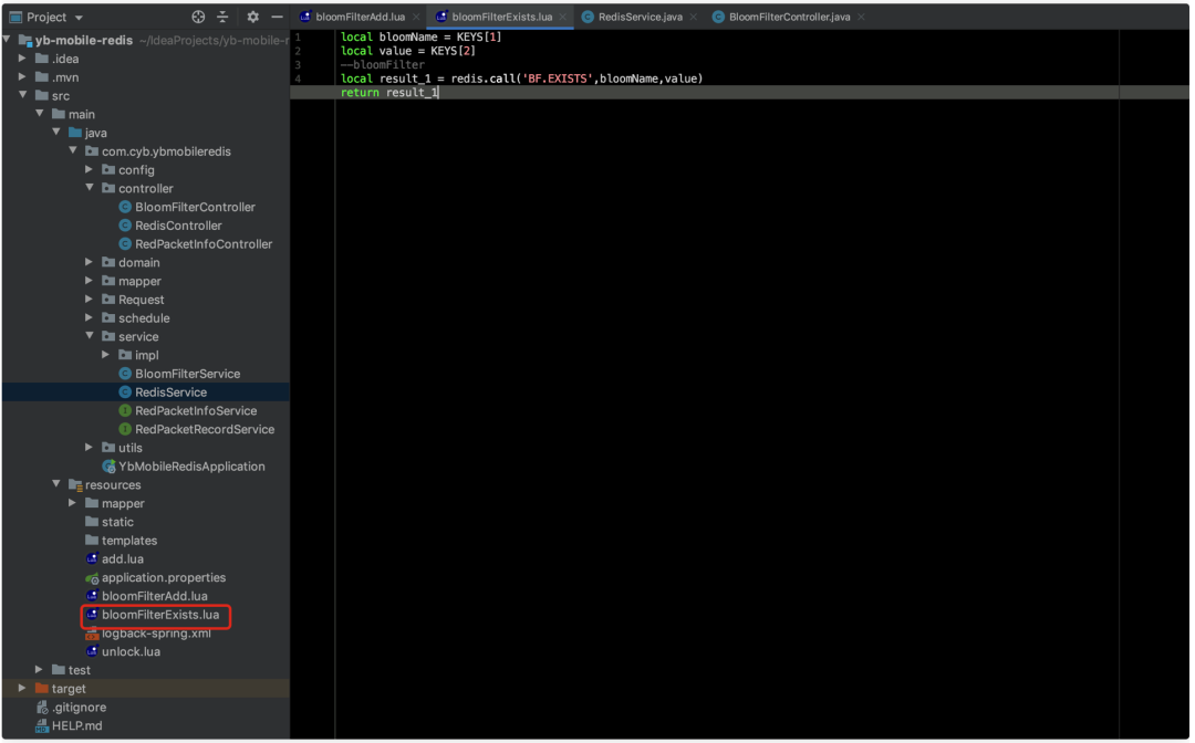 添加数据到指定名称的布隆过滤器 从指定名称的布隆过滤器获取key是否存在的脚本