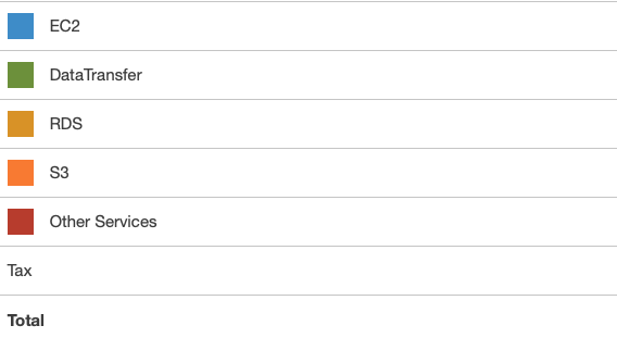 通过 AWS 的账单概览中我们可以发现费用排名依次为 EC2,DataTransfer 等,下面针对 EC2,DataTransfer 等我们需要做账单的详细分析。