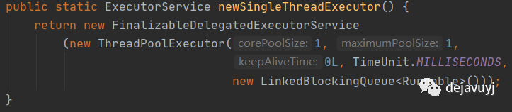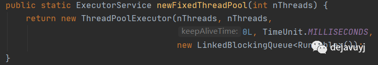 只有1个入参,核心线程数和最大线程数都是nThreads,任何时候同时只有这么多的线程处于活跃状态,超出这个数量的话,新提交的任务会在无界队列中进行等待,直到有任务结束,再执行新的任务.