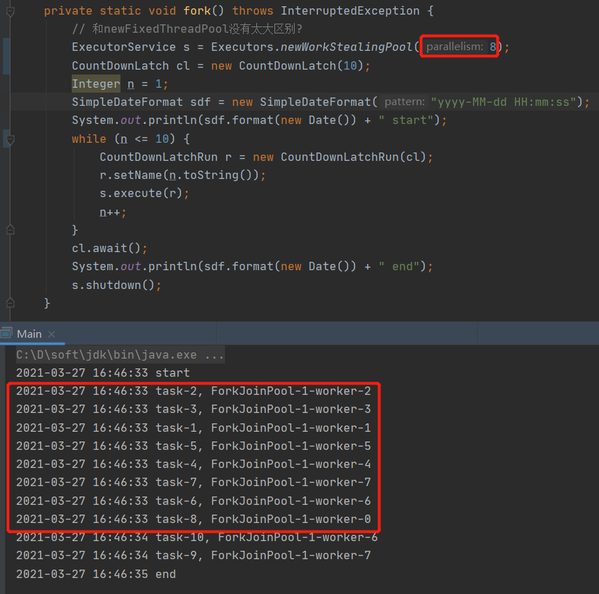 newWorkStealingPool(int parallelism) WorkStealing线程池