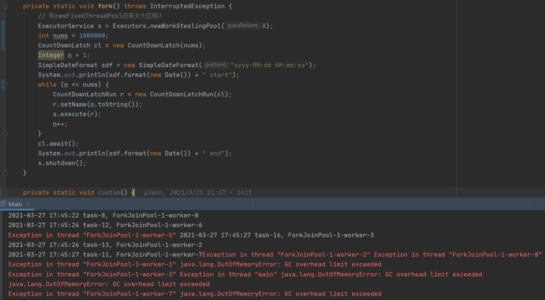 那么newWorkStealingPool会不会出现OOM呢? 有些人说不会,但是经过测试,还是会出现OOM.