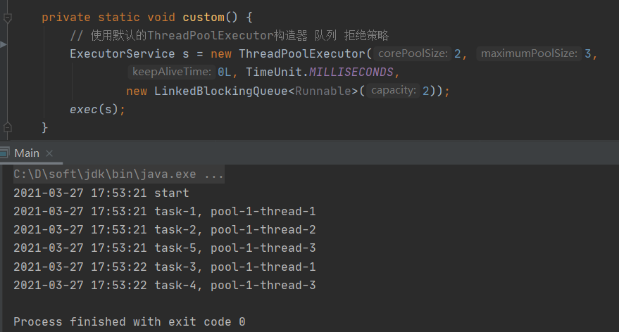 我们使用ThreadPoolExecutor构造器测试一下自定义的线程池.