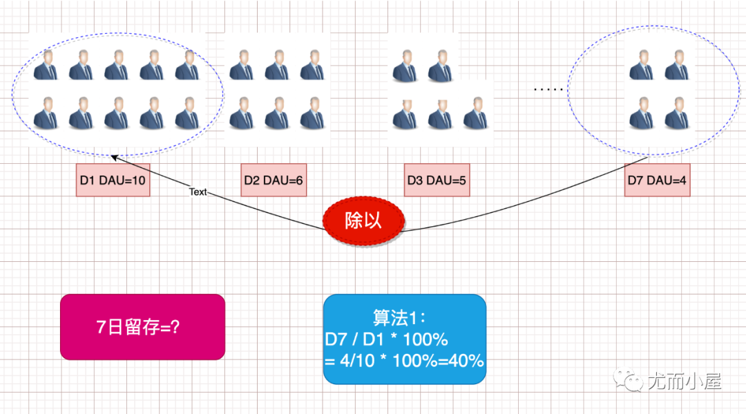 第一种算法是:第7天活跃人数 第1天活跃人数 * 100%