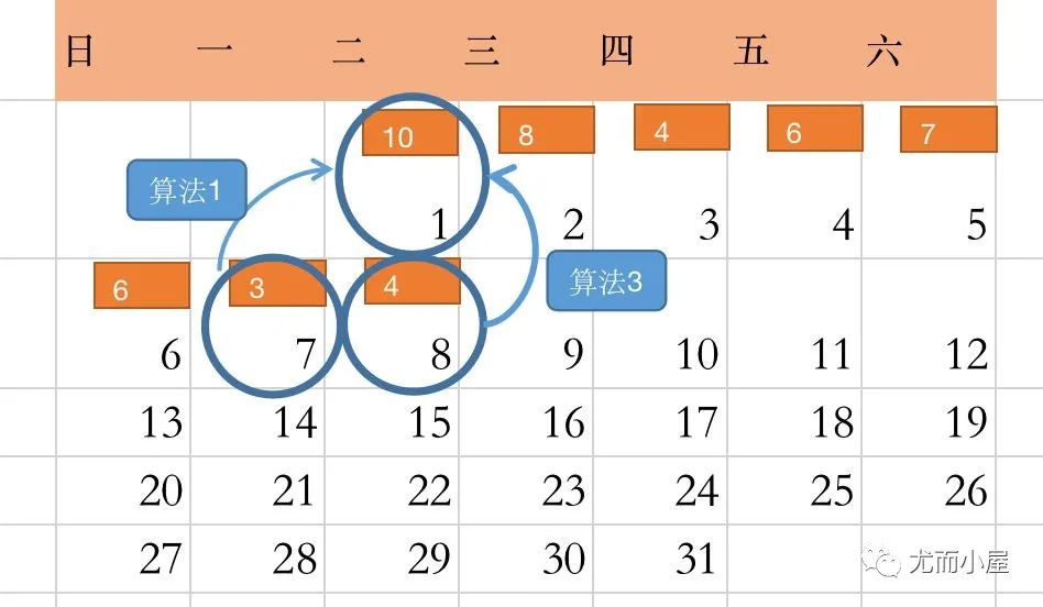 举例说明一下算法3的使用,比如DAU=10刚好是星期2产生的数据: