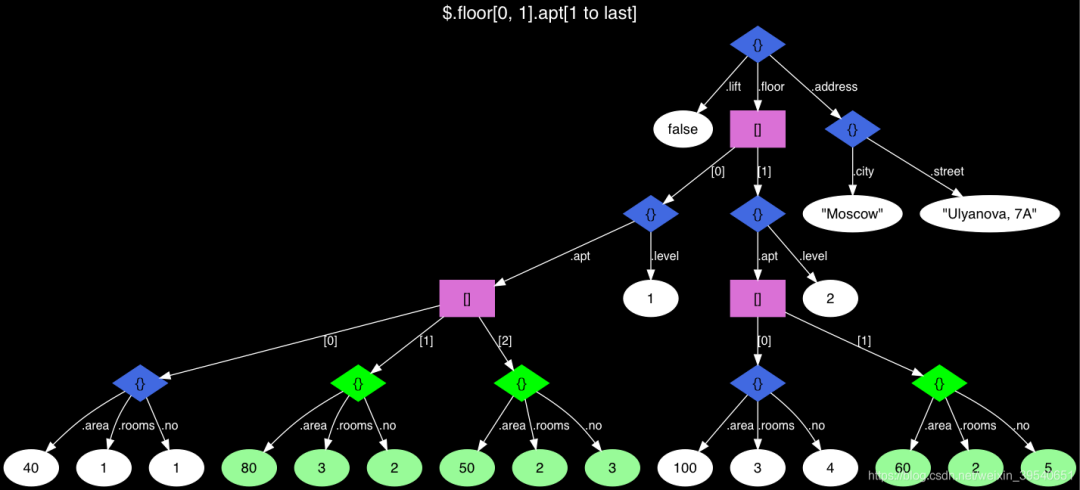 bill@bill=>SELECT jsonb_path_query_array(js, '$.floor[0, 1].apt[1 to last]') FROM house;jsonb_path_query_array-----------------------------------------------------------------------------------------------------------[{"no": 2, "area": 80, "rooms": 3}, {"no": 3, "area": 50, "rooms": 2}, {"no": 5, "area": 60, "rooms": 2}](1 row)
