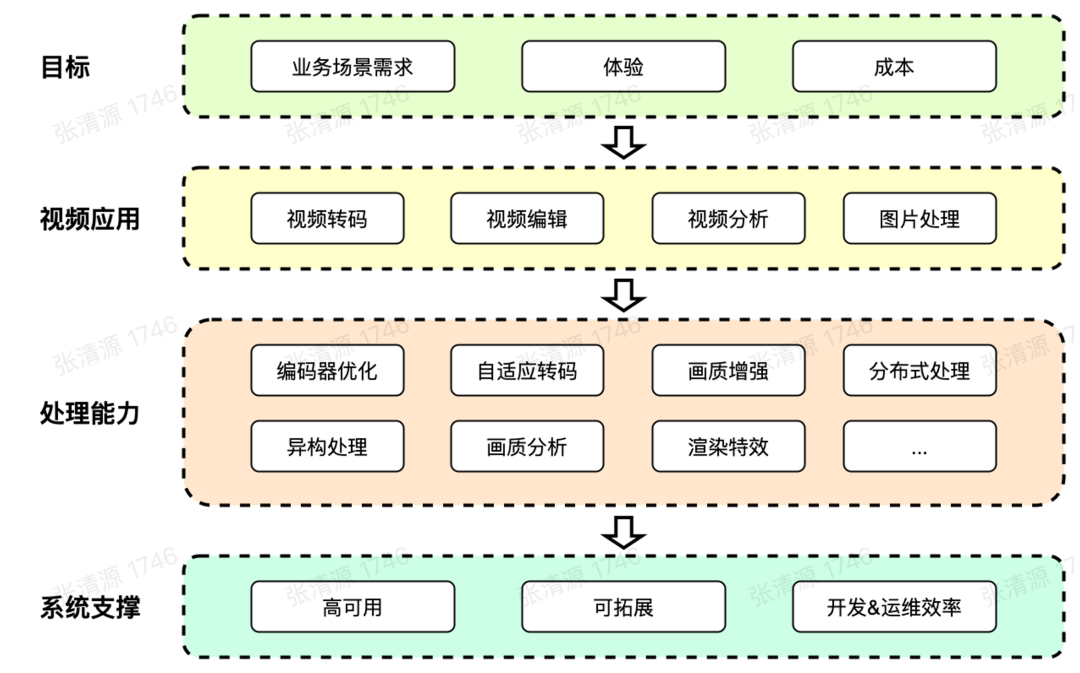 满足业务需求。 提升用户体验。比如画质、流畅性等方面的体验。 降低成本。字节跳动的体量带来的计算、存储以及 CDN 成本都非常巨大,所以降低成本也是一个很重要的目标。