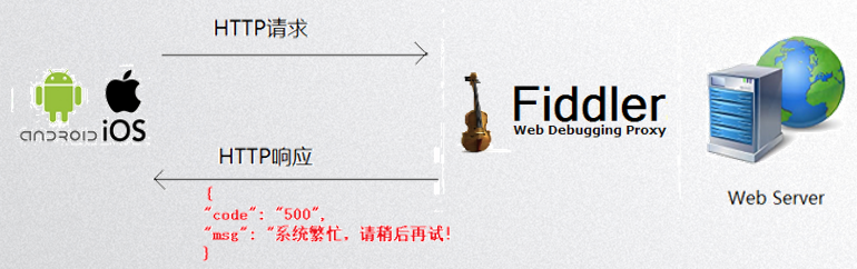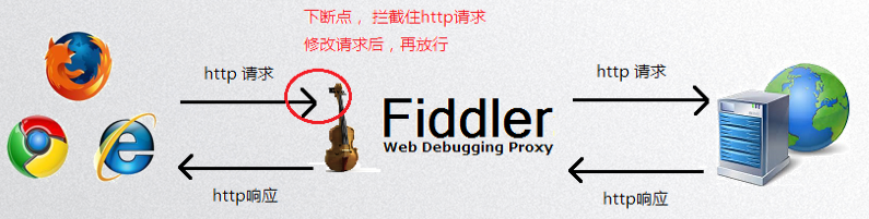 Fiddler伪造HTTP响应原理示意图: