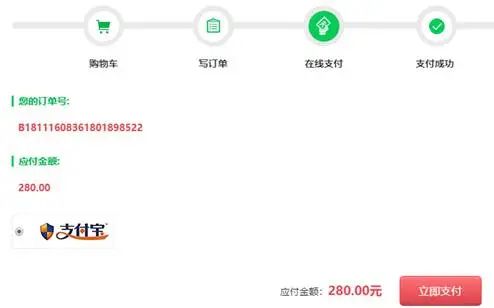 用支付宝支付0.01元后,可以看到订单成功界面。