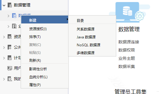 Smartbi提供多种数据源类型、数据库种类,可链接市面上常见的数据库。