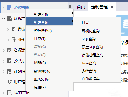 新建查询,查询结果作为smartbi资源展示的数据来源。