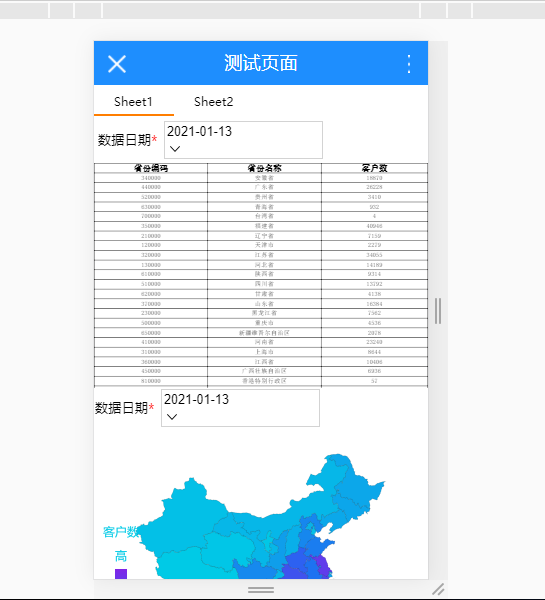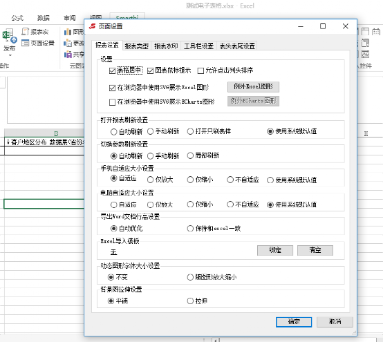 数据集输出字段设置完毕后,点击页面设置,由于该电子表格用于移动端展示,需要设置手机自适应大小。