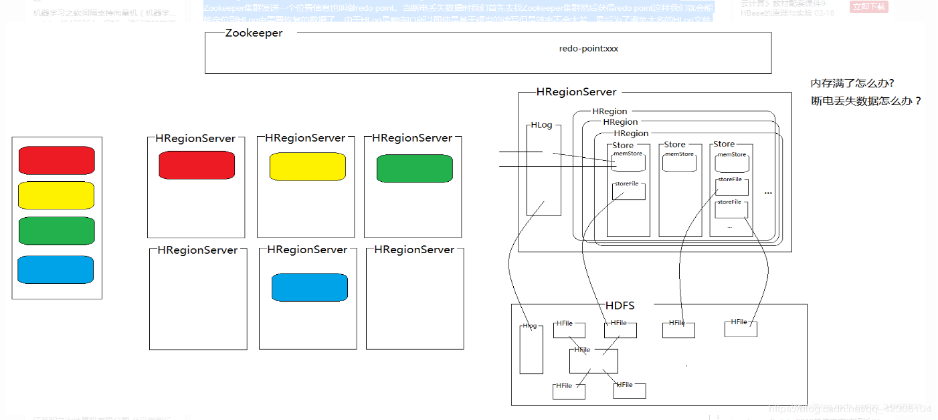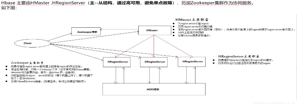 ⑤ HDFS集群:HDFS为HBase提供高可靠的文件存储服务,HBase的数据全部存储在HDFS中。