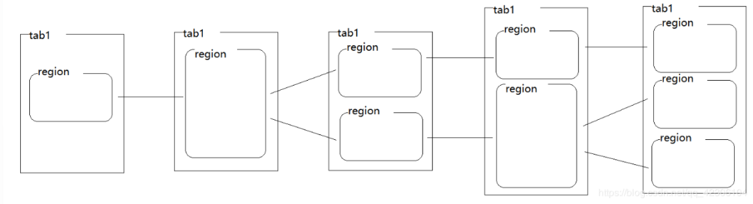 组件说明:HBase将表从逻辑上横向切分成若干个HRegion,。起初,一个表中只包含一个HRegion,所有的数据都放在一个HRegion中。随着数据量的积累,HRegion中的数据会越来越多,HRegion就会产生分裂。以此类推数据不断增大就会不断的分裂产生更多的HRegion。