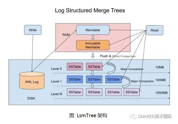 Immutable Memtable:是在内存中只读的MemTable,当MemTable占用的内存达到阀值后就自动转换为 Immutable Memtable,系统此时会生成新的 MemTable 供写操作继续写入。其目的是为了避免将 MemTable 中的内容序列化到磁盘中时会阻塞写操作。