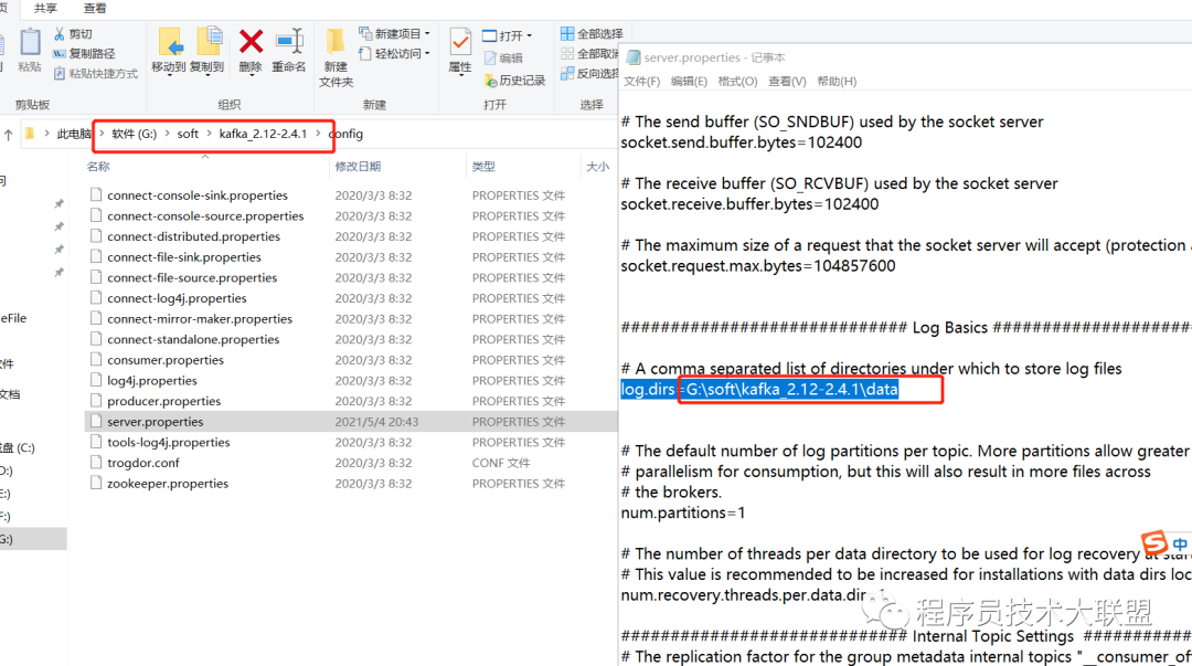 https://archive.apache.org/dist/kafka/2.4.1/kafka_2.12-2.4.1.tgz2.解压后将config目录下server.properties文件的log.dirs值修改为如:自己解压的地址的data目录下,如图所示: