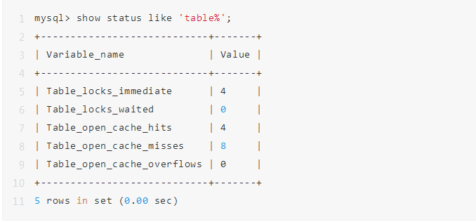 如果 Table_locks_waited 的值比较高,则说明存在着较严重的表级锁争用情况。