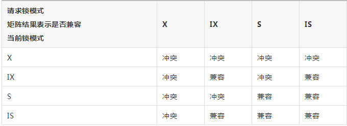 意向共享锁(IS):事务打算给数据行加行共享锁,事务在给一个数据行加共享锁前必须先取得该表的IS锁。
