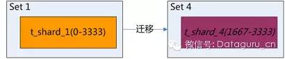 下面描述采用策略2具体的扩容流程。假如要将Set1中的t_shard_1的数据迁移一半到Set4中的t_shard_4(1667-3333)。