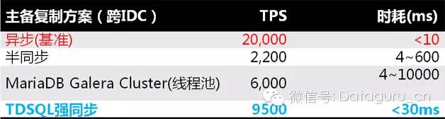 这套方案相对异步复制,在数据的可靠性方面确实好很多,在主机本身故障的情况下,基本能保证不丢失事务(因为最后一个事务,至少有一个备机上存在),但一旦退化成异步复制就回到过去了。TDSQL没直接采用这套方案,是因为:在主备跨IDC(ping延迟2-3毫秒)时性能非常很低。