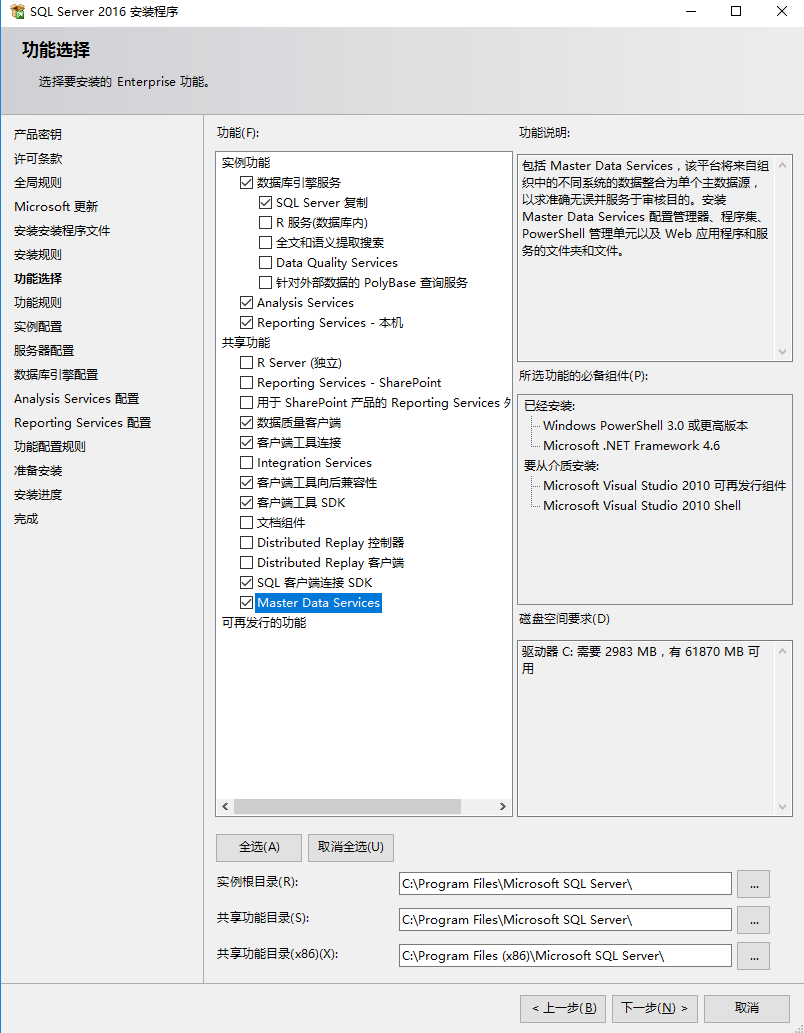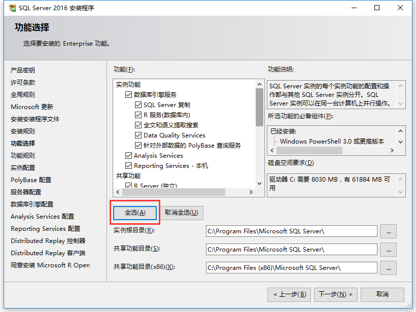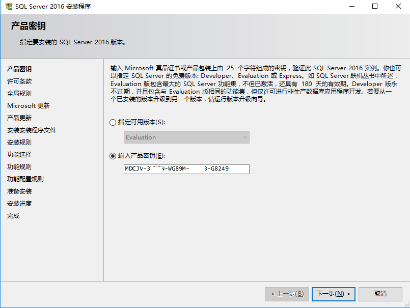5.输入SQL SERVER 2016的产品秘钥,点击”下一步“继续。