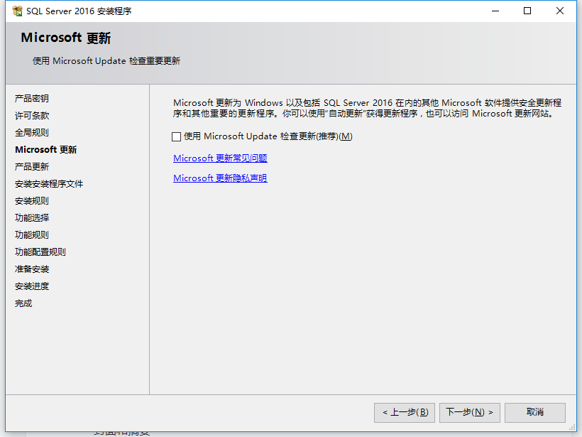 7.出现Microsoft更新的选择页面,这里不需要点击选择“使用Microsoft update检查更新”。