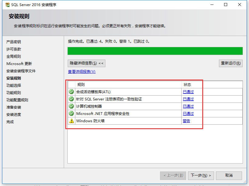 8.开始进行安装规则的检测。完成后点击“下一步”继续安装。
