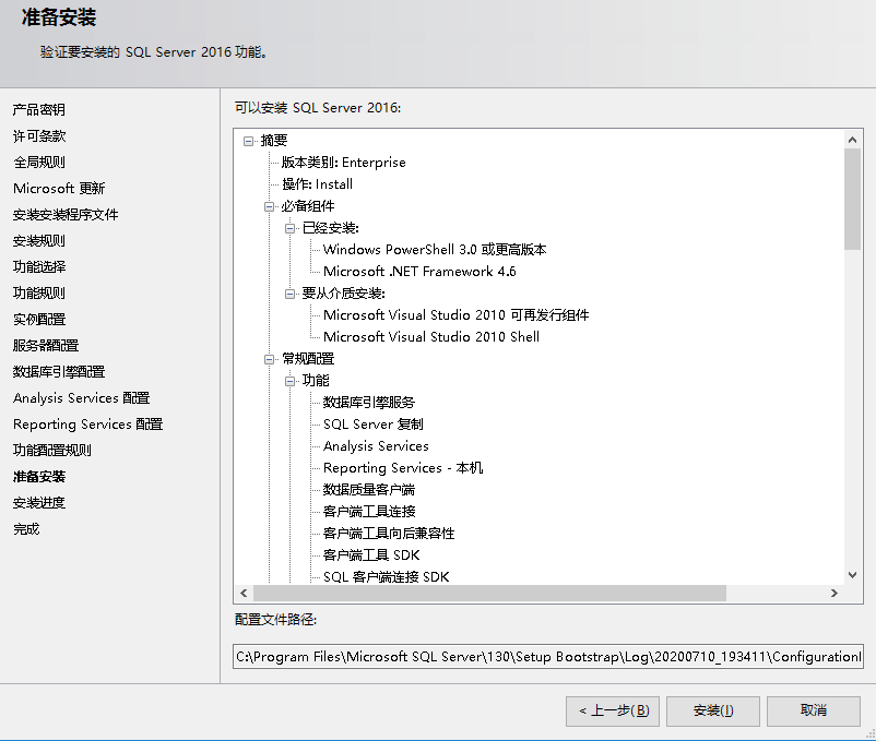 16、经过上面的配置,终于可以正式安装SQL SERVER 2016了,点击“安装”开始安装过程。