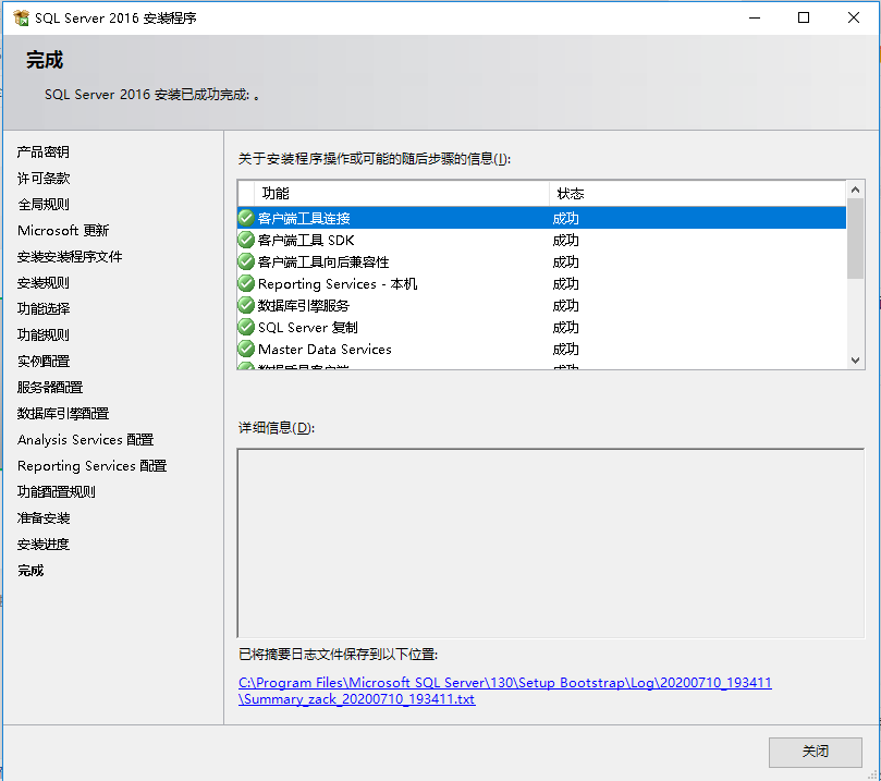 18、出现下面的界面表示SQL SERVER 2016安装完成。