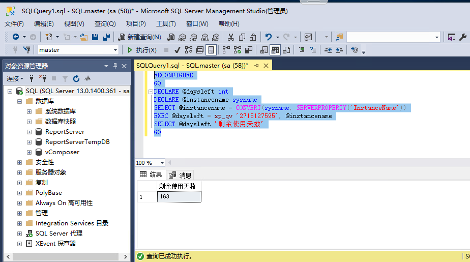 此语句执行返回0,表示是激活版本;返回非0值,表示试用版的剩余可用天数。