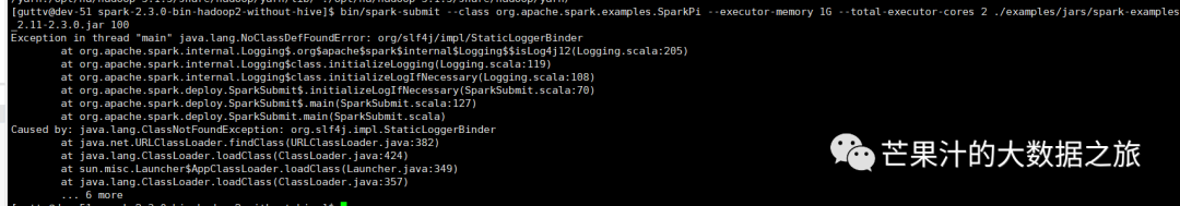 一开始根据提示往spark/jars/ 引入了第一个slf4j的jar包,但是会报新的错误。