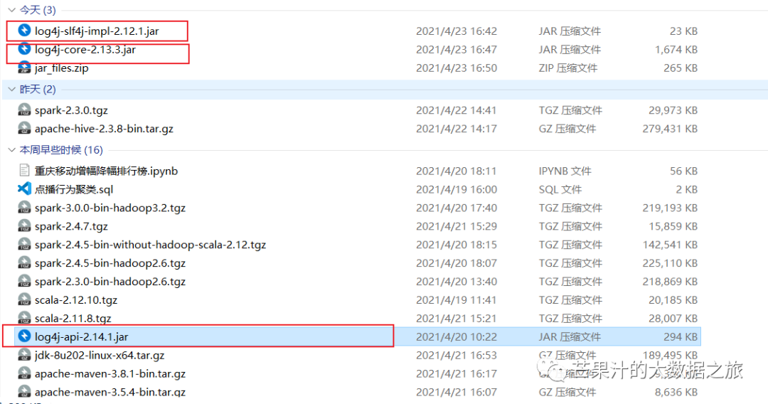 于是把图中第二个和第三个日志jar包均引入spark/jars/