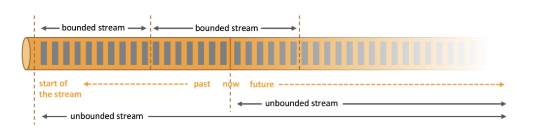 而在flink的世界观中,一切都是由流组成的,离线数据是有界限的流,实时数据是一个没有界限的流,这就是所谓的有界流和无界流。