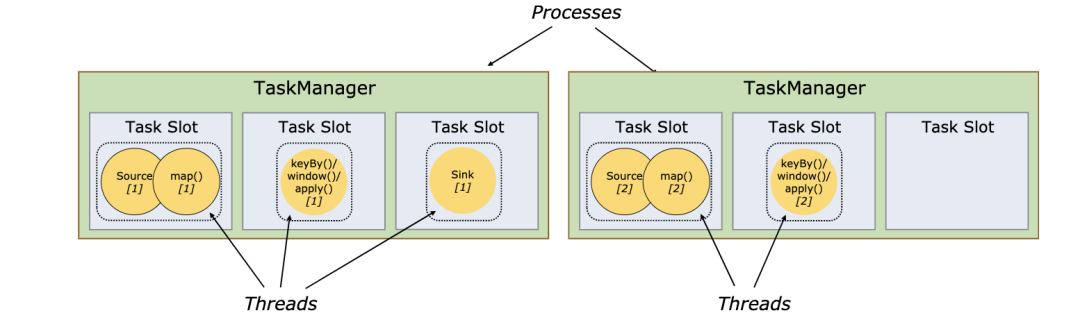 每一个worker(TaskManager)是一个JVM进程,它可能会在独立的线程上执行一个或多个subtask。为了控制一个worker能接收多少个task,worker通过task slot来进行控制(一个worker至少有一个task slot)。