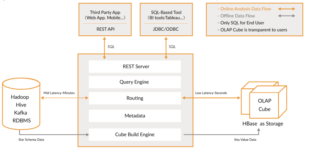 在最初设计时曾考虑过将Kylin不能执行的查询引导去Hive中继续执行,但在实践后发现Hive与Kylin的速度差异过大,导致用户无法对查询的速度有一致的期望,很可能大多数查询几秒内就返回结果了,而有些查询则要等几分钟到几十分钟,因此体验非常糟糕。最后这个路由功能在发行版中默认关闭。