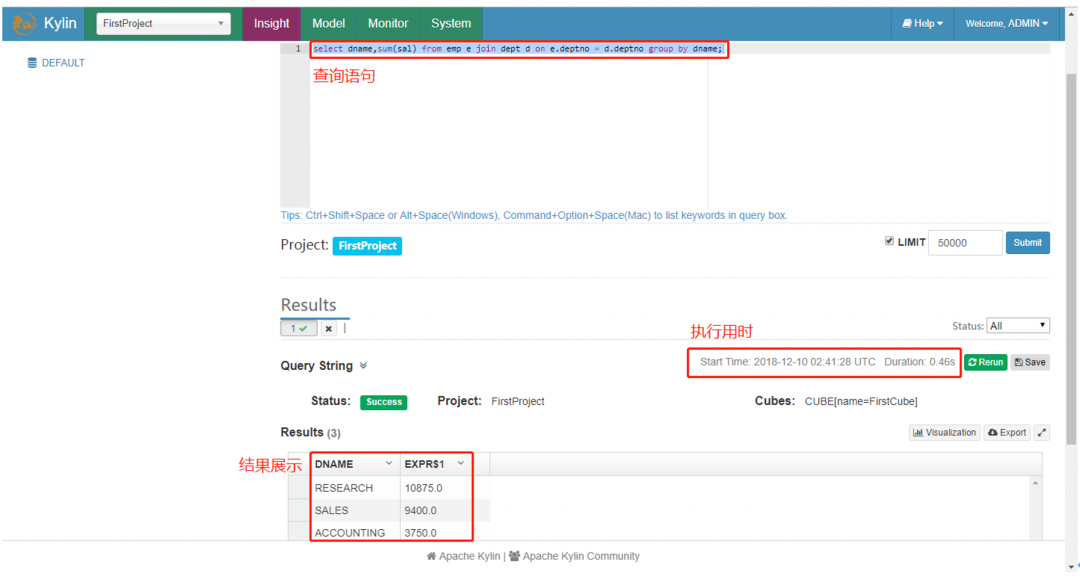 Apache Kylin™ 令使用者仅需三步,即可实现超大数据集上的亚秒级查询。