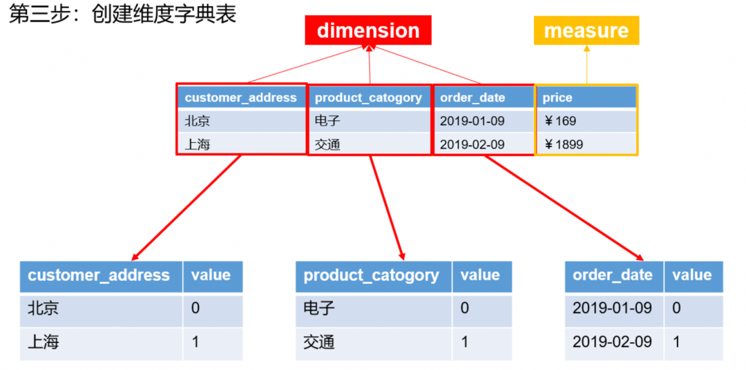 虽然衍生维度具有非常大的吸引力,但这也并不是说所有维度表上的维度都得变成衍生维度,如果从维度表主键到某个维度表维度所需要的聚合工作量非常大,则不建议使用衍生维度。