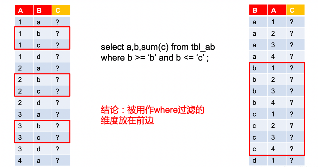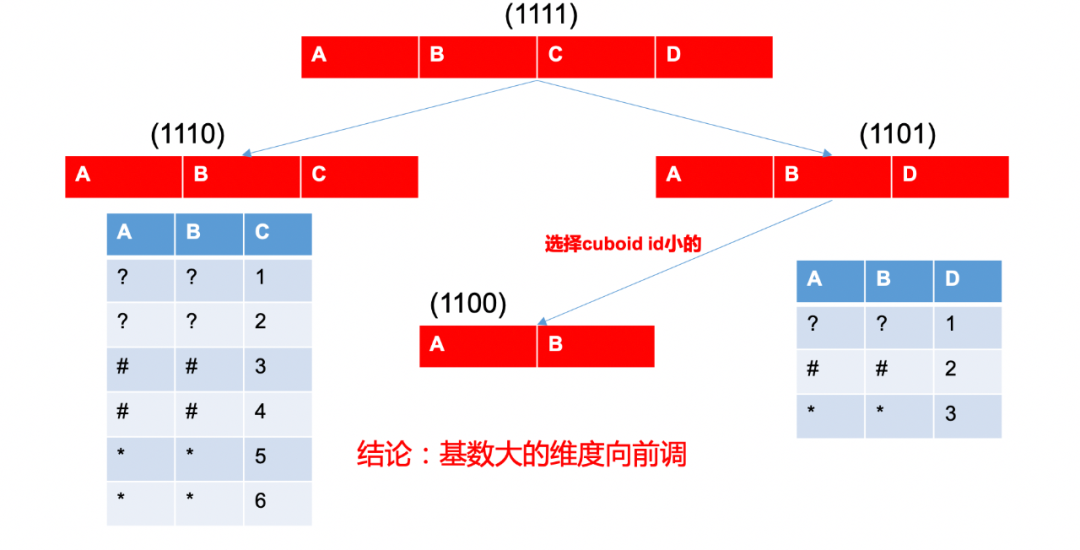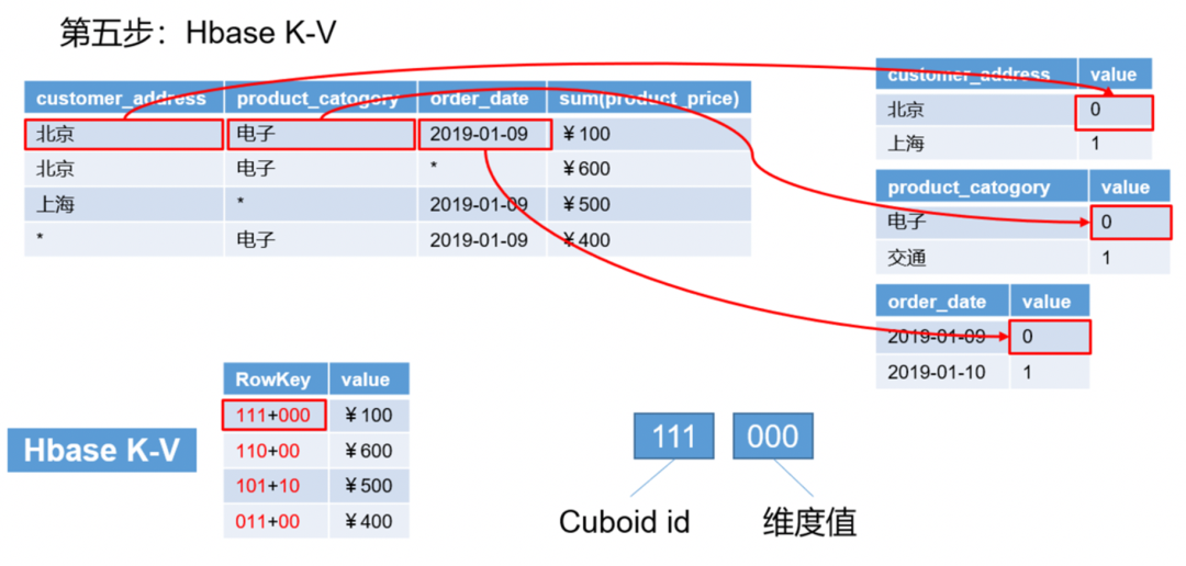 Kylin会把所有的维度按照顺序组合成一个完整的Rowkey,并且按照这个Rowkey升序排列Cuboid中所有的行。