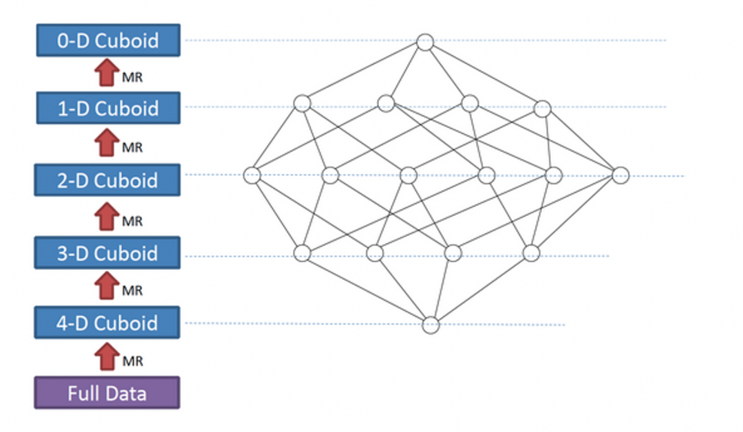 每一轮的计算都是一个MapReduce任务,且串行执行;一个N维的Cube,至少需要N次MapReduce Job。