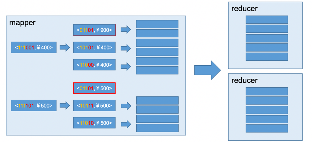 1) Mapper会利用内存做预聚合,算出所有组合;Mapper输出的每个Key都是不同的,这样会减少输出到Hadoop MapReduce的数据量,Combiner也不再需要;
