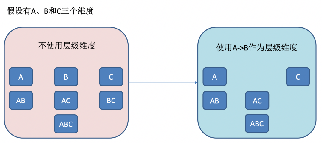 2)层级维度(Hierarchy),每个层级包含两个或更多个维度。假设一个层级中包含D1,D2…Dn这n个维度,那么在该分组产生的任何Cuboid中, 这n个维度只会以(),(D1),(D1,D2)…(D1,D2…Dn)这n+1种形式中的一种出现。每个分组中可以有0个、1个或多个层级,不同的层级之间不应当有共享的维度。如果根据这个分组的业务逻辑,则多个维度直接存在层级关系,因此可以在该分组中把这些维度设置为层级维度。