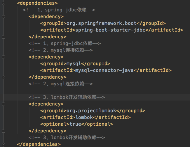 <dependency><groupId>org.springframework.boot</groupId><artifactId>spring-boot-starter-jdbc</artifactId></dependency>